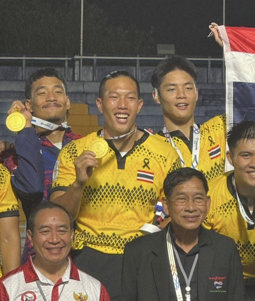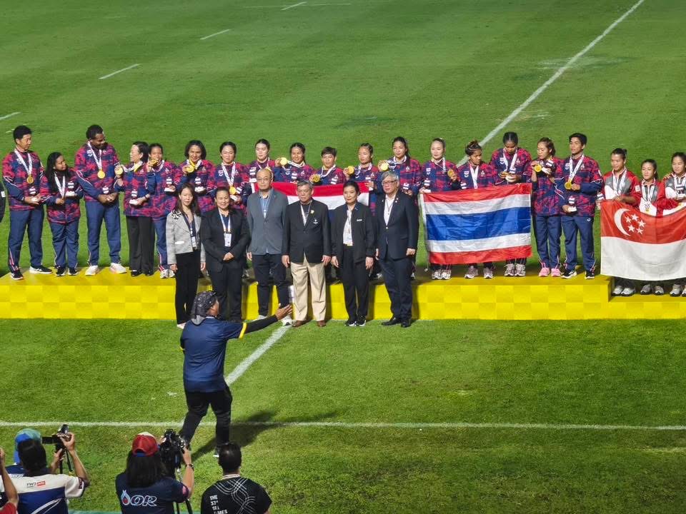 ทัพนักกีฬารักบี้ทีมชาติไทย ชุดคว้า 2 เหรียญทองซีเกมส์ 2025 ที่ประเทศไทยเป็นเจ้าภาพ ในประเภททีม 7 คน ทั้งทีมชายและทีมหญิง