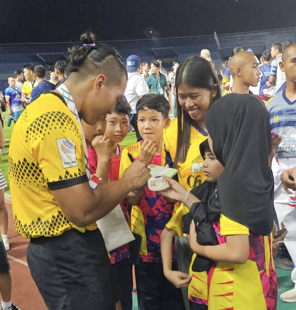 สำหรับทีมรักบี้ทีมชาติไทย นำโดย”โค้ชหยก“ เรือเอก ชาตรี วรรณดิษฐ์ ผู้ช่วยผู้ฝึกสอนทีมชาติไทย ประเภททีมหญิง พร้อมด้วยนักกีฬาทีมชาติ อาทิ “กี้” ธนาภรณ์ หวลคิด และ “โฟล์ค” รัชชานนท์ จิตต์ภาวนาสกุล รวมถึงนักกีฬาคนอื่นๆได้เดินทางเข้าร่วมงานดังกล่าว เพื่อรับมอบเงินรางวัลอัดฉีดด้วย
