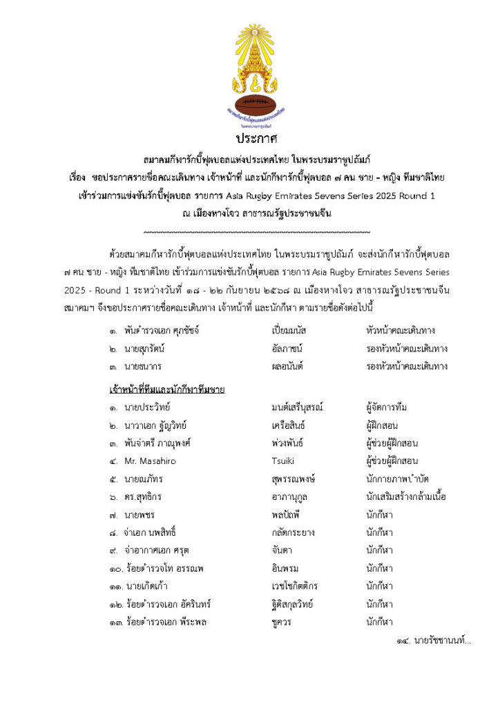 พ.ต.ท.กุลธน ประจวบเหมาะ ที่เวลานี้ดำรงตำแหน่งเป็นประธานสหพันธ์รักบี้แห่งอาเซียน เผยว่าในวันที่ 12 ธ.ค.นี้ จะมีการประชุมใหญ่ของสหพันธ์ ซึ่งตนอาจจะนำเรื่องการบรรจุประเภท 15 คนในการแข่งขันซีเกมส์ครั้งต่อไปที่มาเลเซียเป็นเจ้าภาพในปี 2027 แน่นอนว่าถ้าซีเกมส์ทำได้ ก็อาจจะเป็นมหกรรมแรกในโลก ที่มีการแข่งขันรักบี้ 15 คน เพราะ เอเชียนเกมส์ กับ โอลิมปิก อย่างไรก็ตาม การทำทีม 15 คนจะต้องใช้งบประมาณค่อนข้างสูง ซึ่งตนจะพยายามผลักดันให้ดีที่สุด และคงต้องฟังความคิดเห็นชาติในอาเซียน รวมถึงมาเลเซียเจ้าภาพครั้งต่อไปด้วย