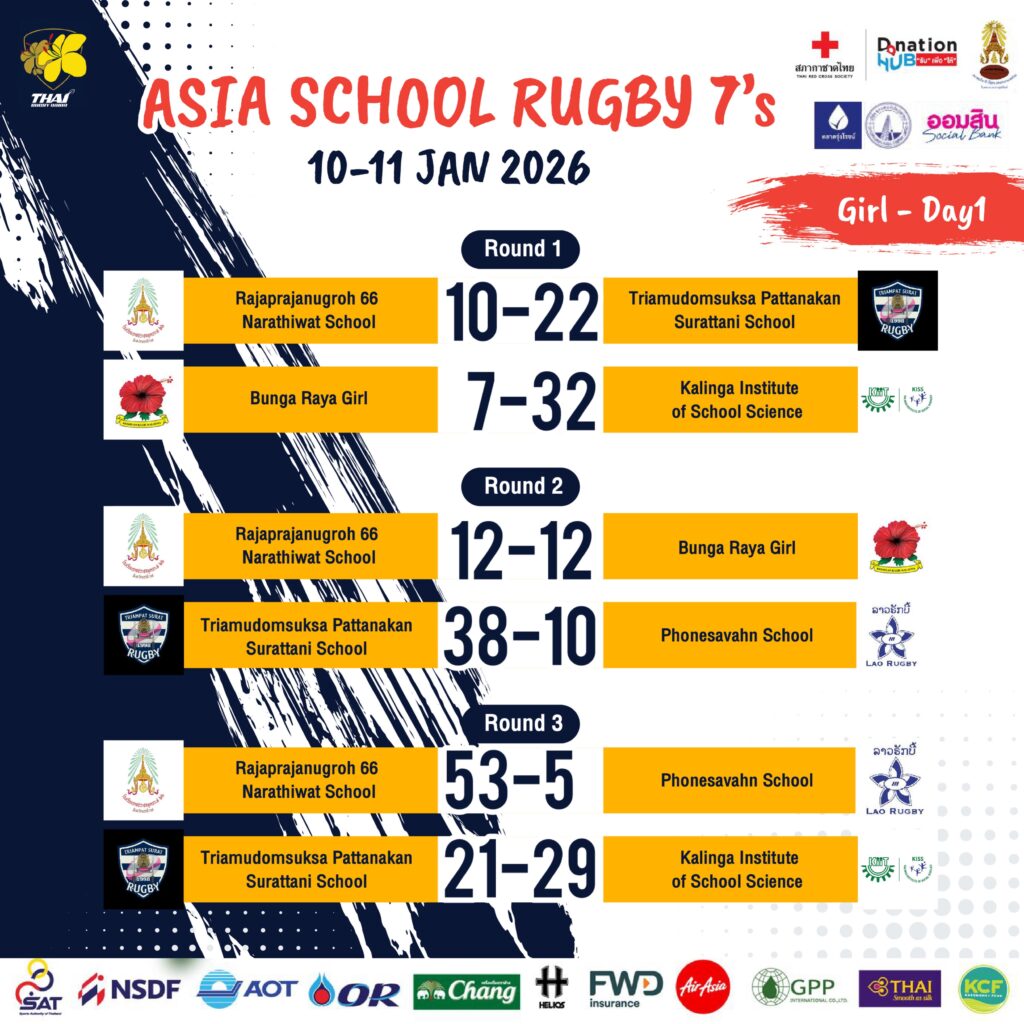 ในส่วนของทัพสาว ร.ร.ราชประชานุเคราะห์ 66 จ.นราธิวาส ทำผลงาน ชนะ 1 เสมอ 1 แพ้ 1 โดยชนะ พรสวรรค์ สคูล จากลาว 53-5 จุด, เสมอ บันกา รายา เกิร์ล จากมาเลเซีย 12-12 จุด และแพ้ทีมเตรียมอุดม 10-22 จุด ซึ่งทัพรักบี้สาวทั้ง 2 ทีมยังมีโอกาสลุ้นทำแต้มเพิ่มในอีก 2 นัดที่เหลือของช่วงเช้าและบ่ายวันถัดไป ก่อนจะเป็นรอบชิงชนะเลิศในช่วงค่ำของวันเดียวกัน